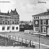 Skoletorvet set mod Th. Langs Skoles hovedbygning. I forgrunden ses den offentlige vandpost og i baggrunden Silkeborg Mølle, som lå, hvor 'Sønderport' blev opført i 1940