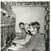 Telefonistinderne siddende på række på telefoncentralen klar til at betjene opkaldene