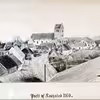 Tegning af parti fra Kongsted med kirken, præstegården m.m. 1910.