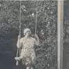 Gæst på gynge i haven til Hotel Æblely, Faxe Ladeplads