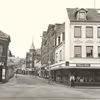 Nørregade, Hjørring - set fra Sct. Hans irkegård mod Nørregades baghuse og nedgangen til Sct. Hans Stræde.