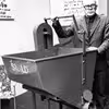 Gårdejer Poul Hansen, Avnslev, viser sin fodervogn, 1973