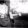 Poul Lassen holder modelfly bygget af Fin eller Hans. Hus nr. 61 (Engvej 3).