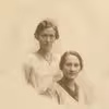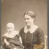 Tjenestepige Marie Hansen med pigen Musse i haven til Tvilum Hovedgård.