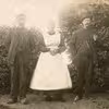 Fra venstre: Niels Nielsen og hustru Maren Byskov Futtrup i Store Maagaard paa Gransgaardvej 18, ca 1928. - Manden til højre er ukendt.