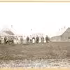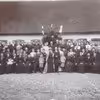Anhof. Ejere og personale opstillet foran avlsbygningerne sammen med hestespand og to hunde