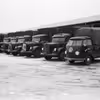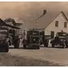 Besættelsestiden. Den tyske hovedstyrke ankom i en række lastbiler og rutebiler og kørte direkte gennem byen til lufthavnen - her fra Vesterbro over Limfjordsbroen 1940