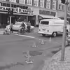 Ahlgade ud for Elefant Apoteket. Opstribning af fodgængerfelt.