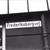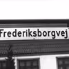 Vejskilt med Frederiksborgvej på hjørnet af Garn-hjørnet.