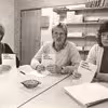 Haderslev Handelsskole holder lærerstrejke og man ser lærere sidde omkring et bord.