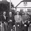 Tømrermester Peter Nielsen Petersen med sine 5 sønner foran Ulsted Samlingshus.