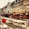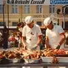 Regatta 1990: Udskæring af de grillstegte okser er så småt gået i gang på Torvet