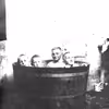 4 drenge i bad. Billedet er fotograferet under 1. verdenskrig. formodentlig i fyrrummet i Nøvling mejeri.