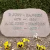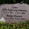 Gravsten på Kauslunde kirkegård over Jørgen og Edith Hansen, 2002.