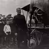 Dobbeltdækker propelfly med mange tilskuere.