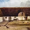 Gårdspladsen på Holmegård med en vandpost