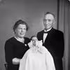 Rita og Hans Bendixen med datteren Hanne ved dennes dåb.