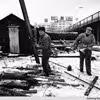 Brødrene Georg og Ejner Jensen i færd med at vælte den sidste fiskerhytte på Nørresundby Havn.