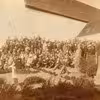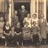 Afskedsprædiken for pastor Bendix, deltagerne samlet udenfor kirken med Bendix midt i billedet