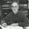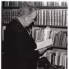 Pastor Fenger står foran reol, o.1950