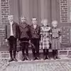Feriebørn på trappen til Holmen matr. 20a i Lisbjerg. Søren og Ane Marie Haurum og andre.