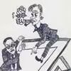 Tegning fra valgbladet 1984 med borgmester Knud Friborg, der sammen med fremskridtsmand Jespersen slår valgbogstaverne Z og A sammen
