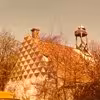 Storkerede med storke på taget af Junkers Gymnastikinstitut