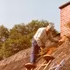 1958 ca Vejsmarkvej 33 i Grættrup. Tækkemand Anton M. Jensen i Grættrup med oppasser Esper Kristiffersen tækker hus hos Kristian Jakobsen