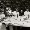 Familien Muusfeldt og deres venner samlet omkring frokostbordet i haven på Carl Baggers allé, tidligere Baggersvej 10