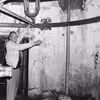 Fiskerbåd i Skovshoved Havn trukket op på land. Til venstre ses et hus med høj skorsten, som ligger på Strandvejen 236