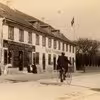Skovshoved Hotel med købmand Peder Christensens købmandsbutik i den ene ende af bygningen. På Strandvejen er en cyklist på vej nordpå