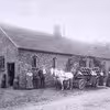Postbudene: Knud Larsen, Johan Peter Christian Aarestrup (født 31-12-1881) og Sørensen står klar ved vognen.