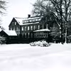 Bygning og have dækket af sne. Gymnastikhøjskolen i Ollerup, 1937