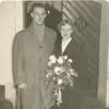 Brudeparret Else og Jørgen Springborg, ved hoveddøren Dronninglund Kirke, Slotsgade 8, Dronninglund