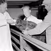 Dyrlæge Herman Pedersen fjerner en roe på en ko, 1952