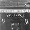 Dato: 1931 Billede af sølvbrudeparret, Søren Petersen og frue Tinne Petersen, foran S. Petersen Bageri på Bredgade 9.