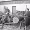 Træskomager Johan Nielsen og hustru saver en kævle op til træsko på Ny Himmelbjergvej 1 ved Gl. Rye.