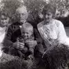 Etlar Dion Rasmussen med barnebarnet Hans Christian Andersen i haven Østre Alle 20, Hjørring.