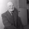 Portræt - brugsuddeler Richard Greve Sørensen (1915-), i kjole og hvidt, Høgsholt Brugs, 1954