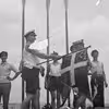 Roere står med oprejste årer, medens flag fra DFfR bliver båret forbi