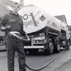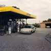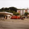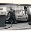Tankstation, uno-X på Jyllandsvej. Indehaver og søn? står foran tankstationen.