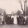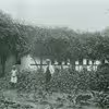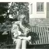 Familiegruppe på havetrappen ved Bykærgård, Vejleby. Ejer Lauritz Jensen og Kirstine Andersen. Han overtog gården 1900.