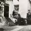 Kongefamiliens børn fotograferet på trappen til Bernstorff Slot. Øverst t.v. prinsesse Alexandrine med prins Frederik på armen og ved siden af dem prins Christian (X)