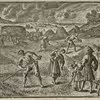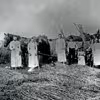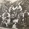 Familiebillede, personerne er i gang med høstarbejdet, Lambjerg Skov