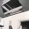 Moesgaard. Ko- og kalvestald under genopbygning efter brand i 1921.