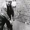 Skomager Peter Christian Nielsen, Havnevej 4, Vorbasse ser på udklækket andeæg ved gadedammen