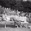 Familien Guldsmed Søren Melgaard, sover middagssøvn, i kolonihaven, på Holstebrovej, juli 1919