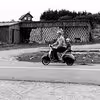 Scooter kører forbi Tibirke Savværk/Møbelfabrik