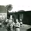 2 små ryttere på gårdspladsen hos smedemester Niels Agner Nielsen, Borgergade 19-21, i 1944.
