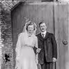 Ukendt brudepar foran ladeport.
